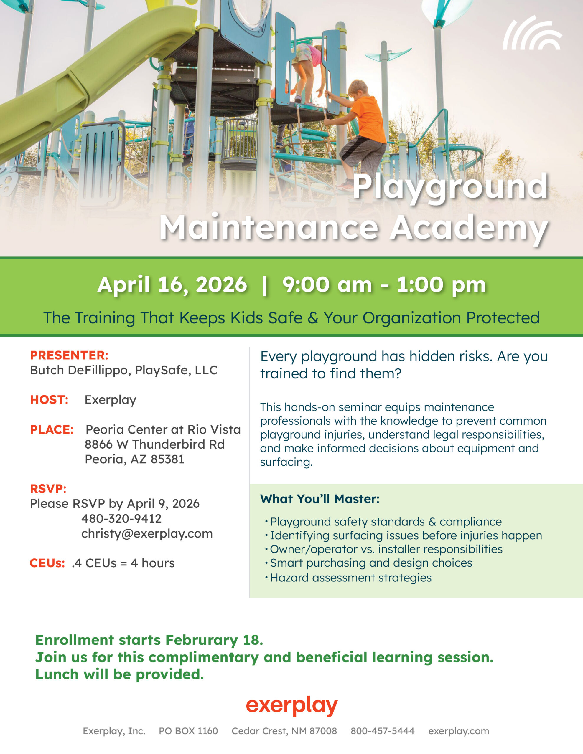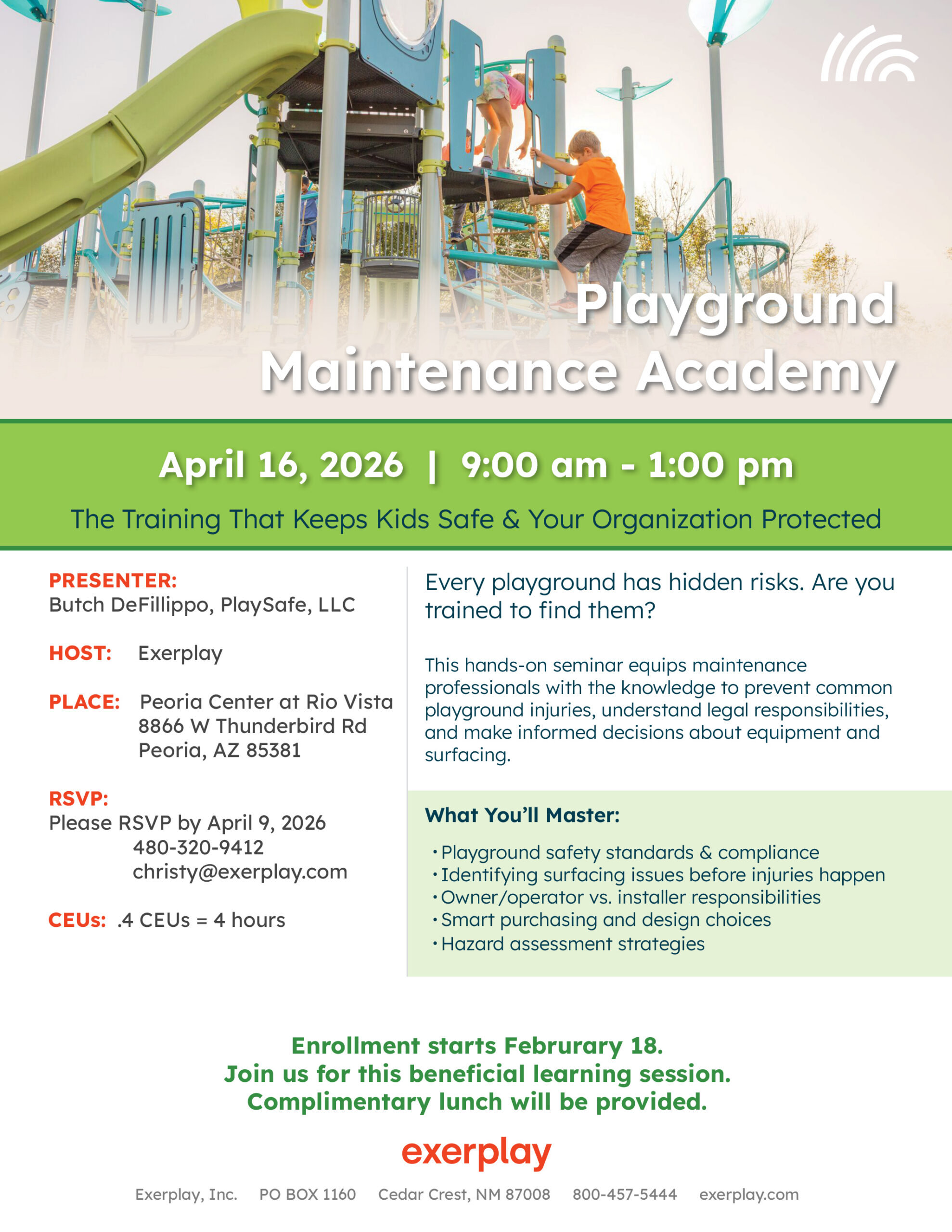 We offer a variety of virtual and in-person Learning Sessions and Play Tours at Landscape Structures. Please email Aaron for information on how to attend.